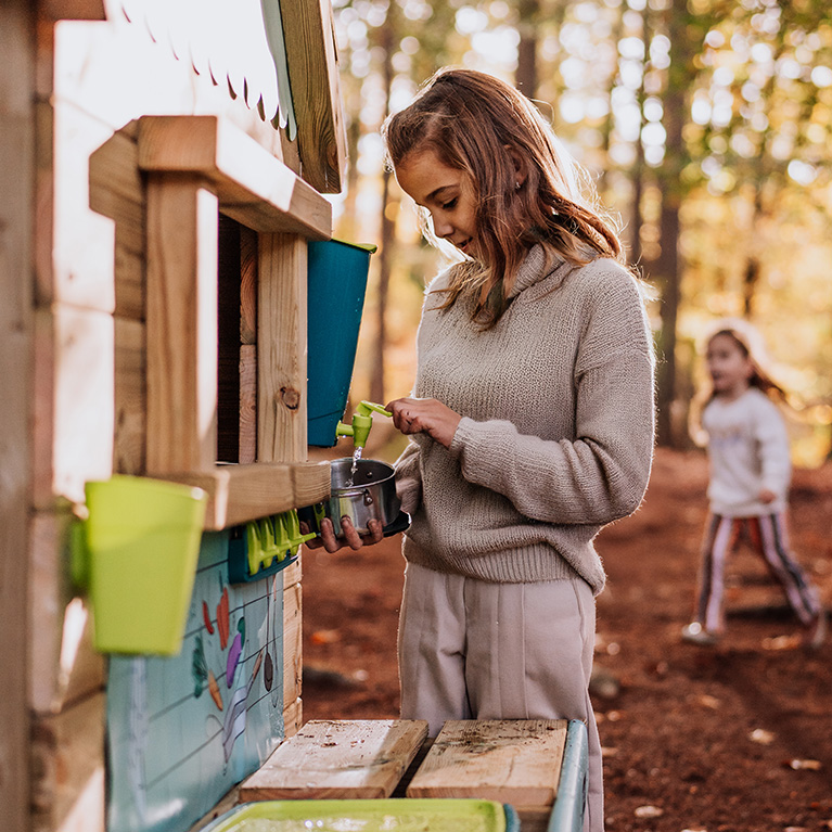 Pro podzimní venkovní kuchyňku je nejlepší nasbírat přírodní materiály, jako je spadané listí, kaštany, šišky nebo různá semena. Skvěle se hodí jako ingredience i dekorace. Povzbuď děti k vymýšlení vlastních „podzimních receptů“: mohou vyrábět třeba sendviče z listí nebo koláče ze šišek. Vše ještě doplň bylinkami nebo květinami pro ještě intenzivnější smyslový zážitek. Pokud si všimneš, že takové aktivity u dětí skutečně podněcují fantazii, může se stát skvělým doplňkem tvého dětského hřiště třeba venkovní kuchyňka Splash Station is a useful addition to your fatmoose equipment.